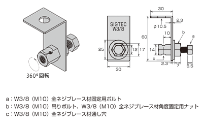 - 全ネジ(寸切ボルト)がラクラク収まり、取り付け角度も自在。