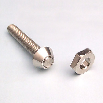 - 通常工具でナットを締め付けると、規定のトルクで、上の頭部のみが外れ(折れ)、下のテーパー形状のナットだけが残り、確実に取り付けできます。テーパー形状(円錐状)のナットだけが残るので、いたずらや取外しは出来ません。あなたの大切なパーツを守ります。